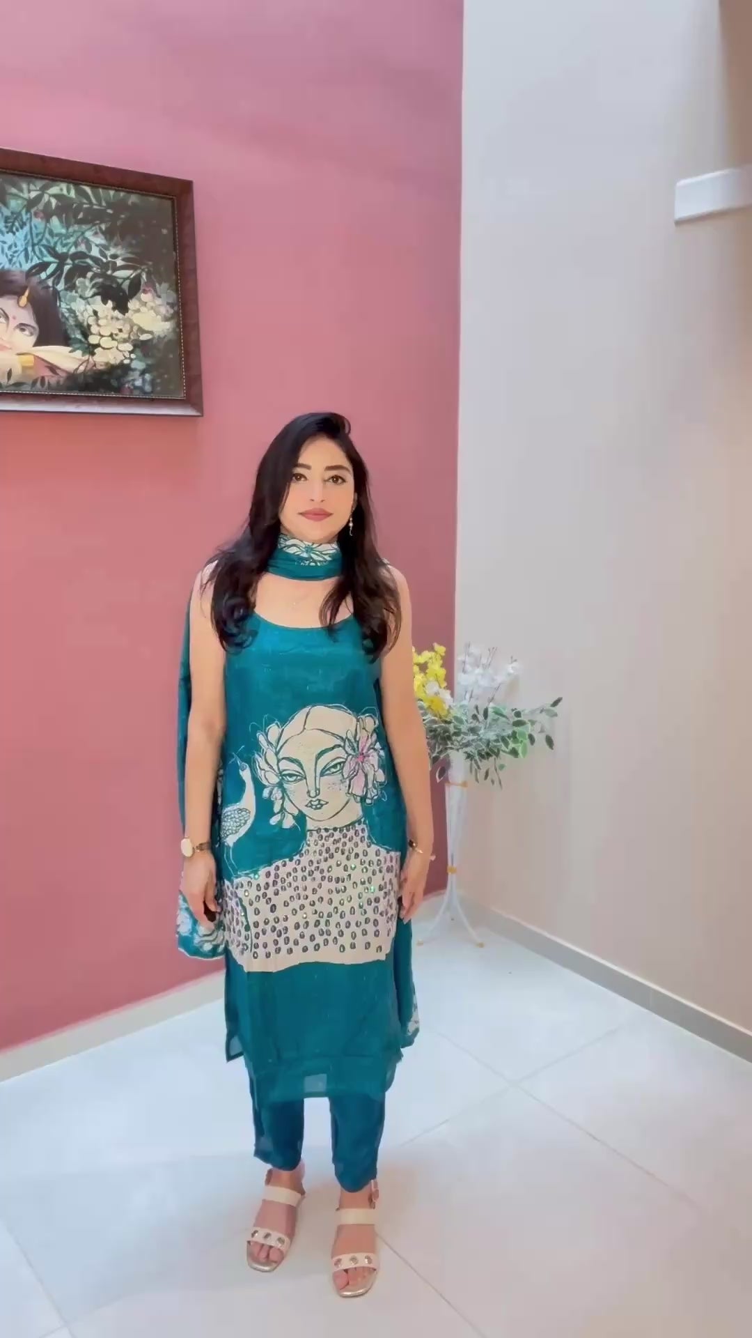 Elevate your ethnic style with this unique pure muslin kurta set, featuring an adjustable strap design for a modern twist. The rich teal hue is beautifully complemented by an artistic face print, creating a perfect balance of elegance and contemporary flair. Soft, breathable, and lightweight—ideal for summer outings, festive occasions, or casual gatherings.